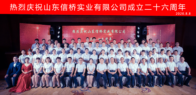 On August 8,2020, the twenty-six th anniversary of Shandong Xinqiao Industrial Co. , Ltd. was held in grand style at the Emperor Garden Hotel in Tai'an. Leaders, colleagues and friends, old and new, who have shown great love to Nobubashi for twenty-six long years, are gathered here with all the employees who have worked hard for the company, share the glory and happiness that belong to everyone! The year twenty-six of Sinbashi is the year twenty-six and the year twenty-six of development.