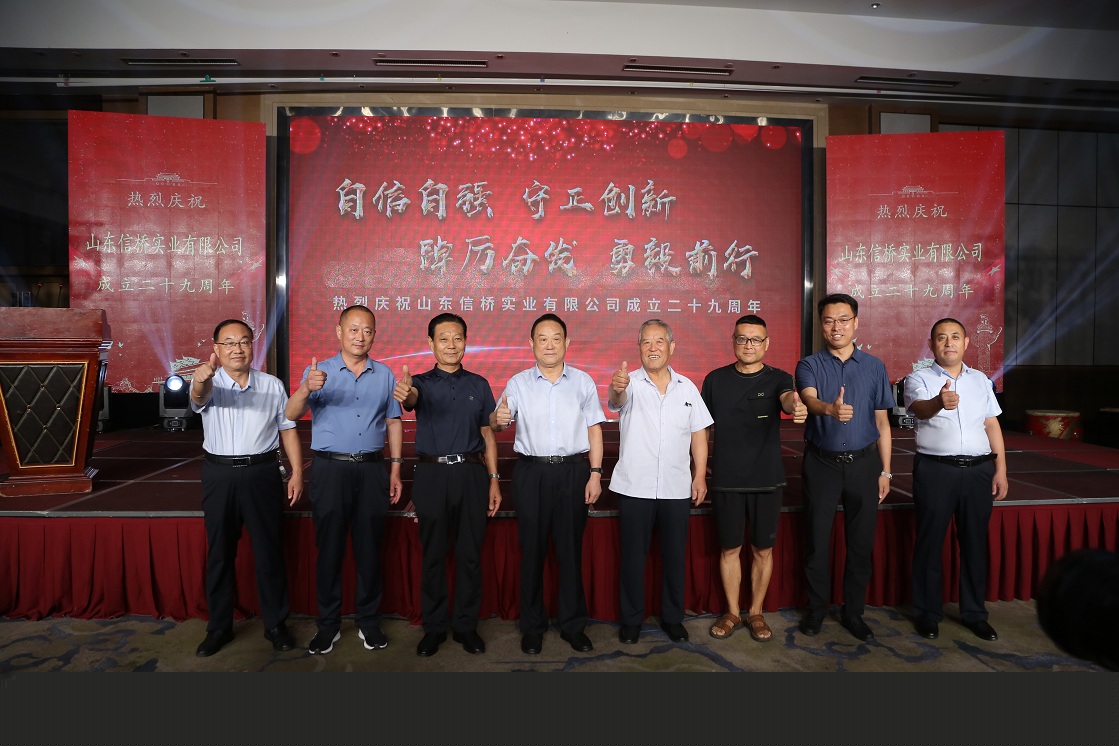 歲月如歌,風(fēng)霜如畫,二十九年彈指一揮間,山東信橋?qū)崢I(yè)有限公司(以下簡(jiǎn)稱山東信橋)迎來了二十九周歲的生日。二十九年來,信橋人在激烈的市場(chǎng)競(jìng)爭(zhēng)中奮力拼搏、砥礪前行,接受了市場(chǎng)風(fēng)風(fēng)雨雨的洗禮,取得了累累碩果。為了慶祝這一特殊的日子,2023年8月8日,以“激流勇進(jìn),安定團(tuán)結(jié)謀發(fā)展 披荊斬棘,開拓創(chuàng)新向未來”為主題的山東信橋二十九周年慶典活動(dòng)在寶盛大酒店舉行。